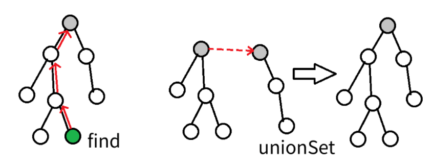 - find:递归查找父节点,最终得到标记子集的根节点(祖先)